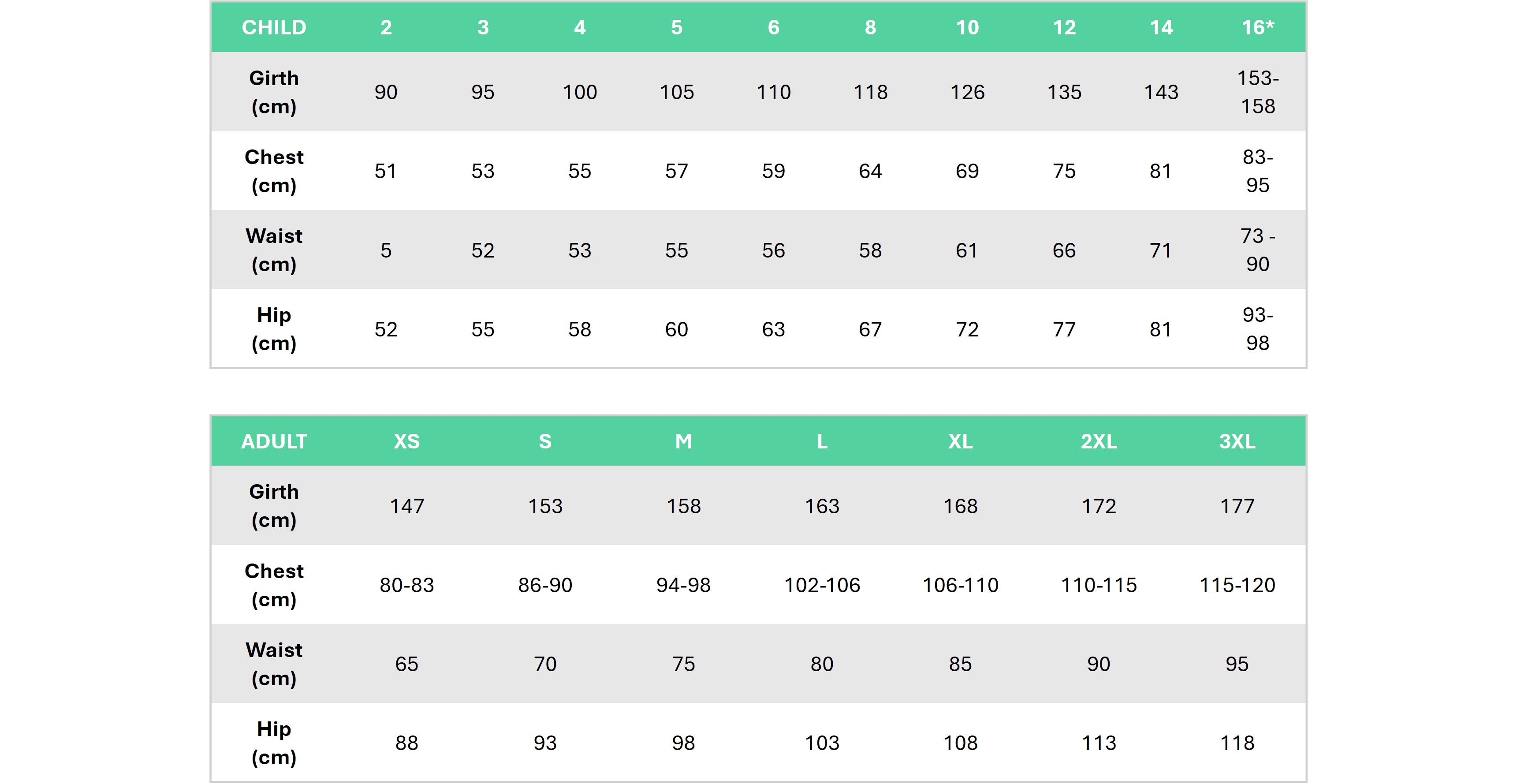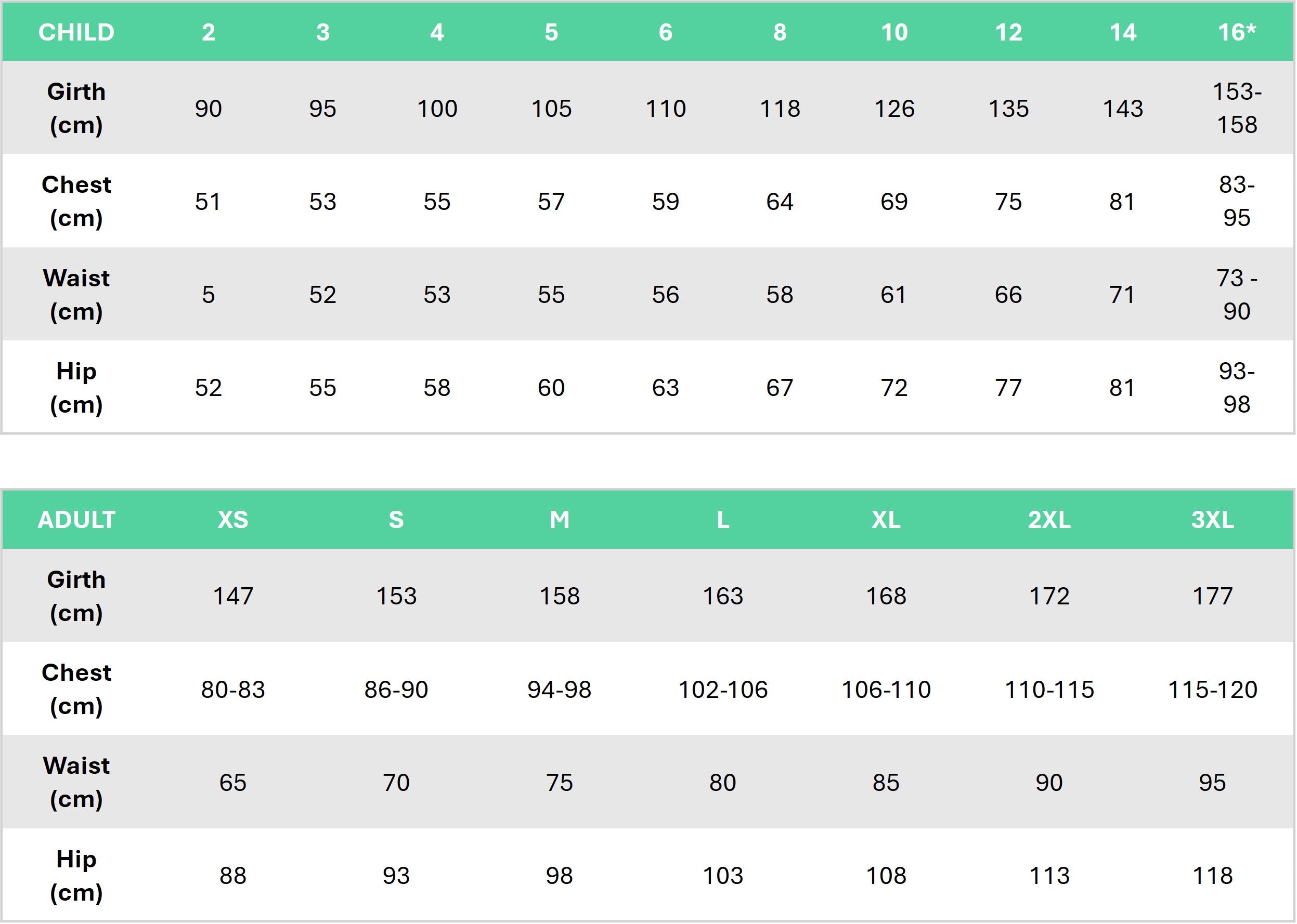 Remember, when ordering in advance, consider potential growth spurts and add 2 – 4cm to the girth measurement.